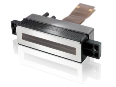 FujiFilm Dimatix has been promoting its MEMS manufactured range of heads for some time. The high performance Samba heads are effectively extensible ‘printheads on a chip’, individual modules containing 2048 nozzles in a rhomboid some 20 mm wide that can be closely packed into continuous arrays.