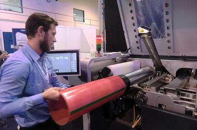 An operator demonstrates fast sleeve change on Tresu’s iCoat 30000 at the Kama open house Kama, HP Indigo and suppliers, including Tresu presented the first…