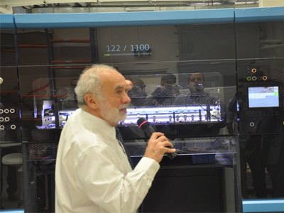 Benny Landa demonstrates the S10 press