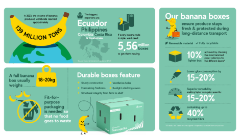 Mondi has introduced a redesigned banana box that is lighter, uses more recycled material, and maintains the strength needed for long-distance fruit transport.